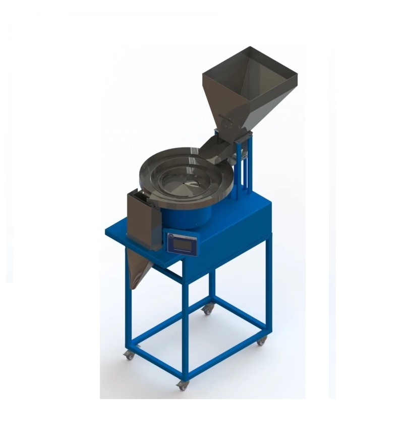 Equipada com panela vibratória como sistema de alimentação que garante o direcionamento contínuo e organizado das peças para o processo de contagem e envase. O sistema de contagem por sensor, contabiliza cada peça individualmente antes do envase.